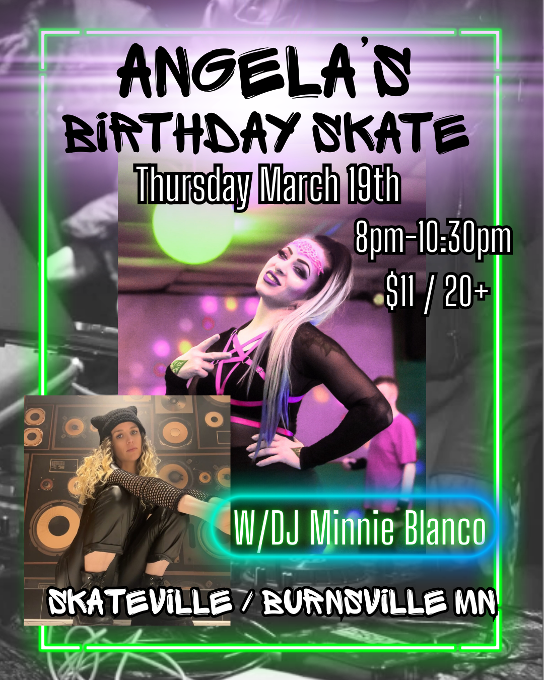 I host rollerskating parties at Cheap Skate Roller Center in Coon Rapids, and I can help organize your event and make sure it is an unforgettable and unique experience. You pick a date and rent out the rink, and I do the rest! From DJ’s to entertainment to photobooths and catering, I’ll take care of the details so you can relax and roll with your guests.
