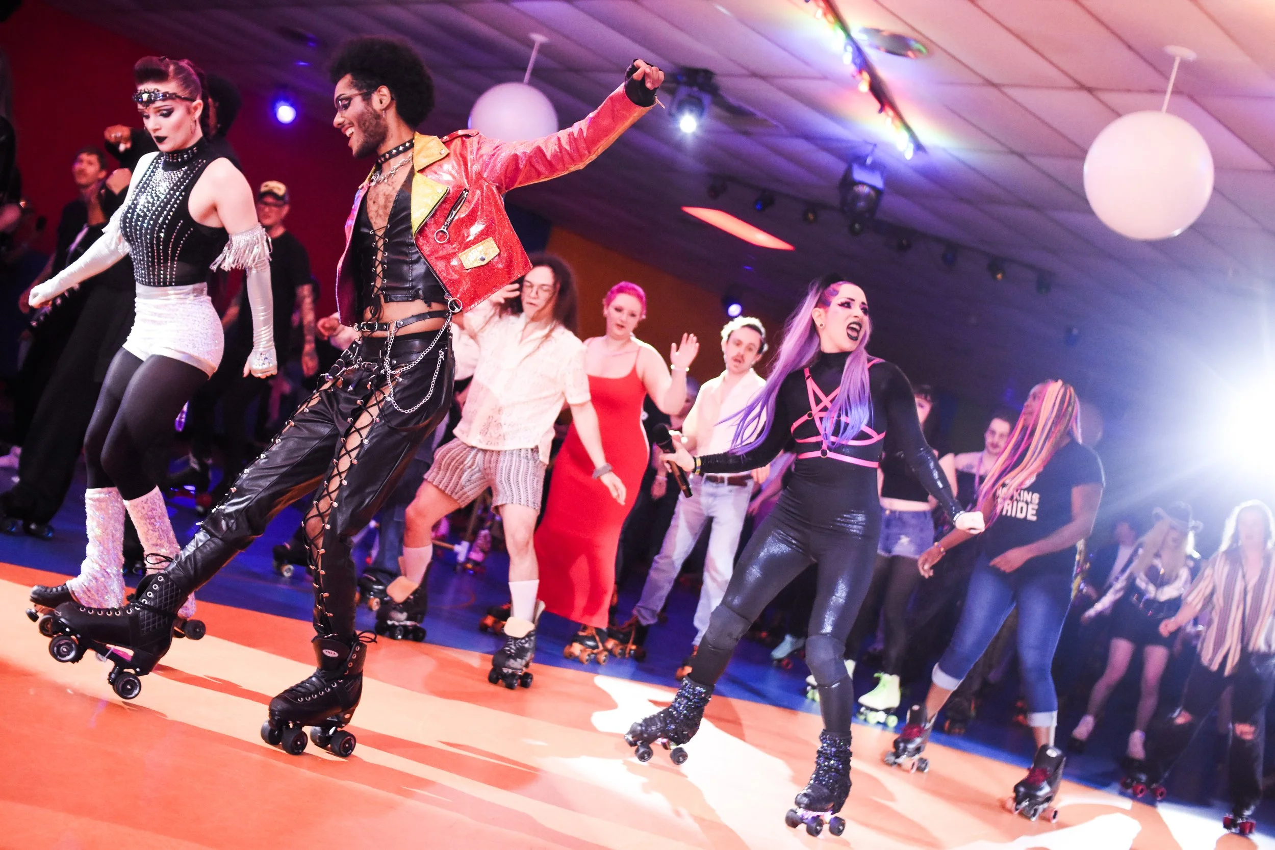 Pride Skate 2025 was a blast! This year’s co-host was the amazing performer Jojo Ventus Ninja who can be found killing it on various stages around town, including The Saloon, Ground Zero Nightclub, drag brunches, and more!